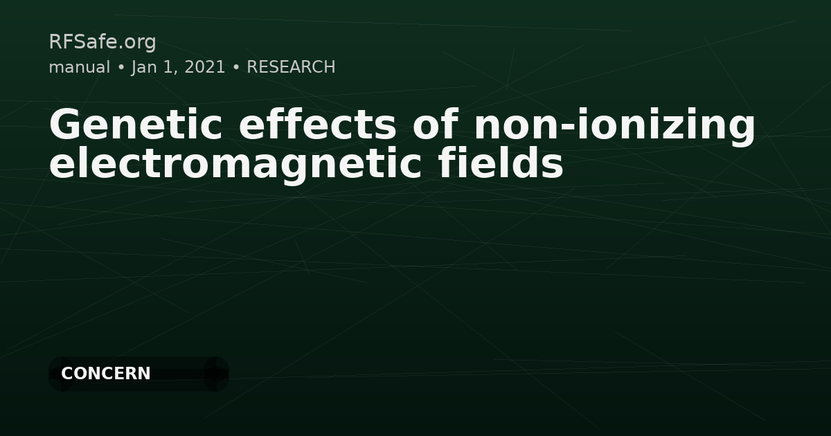"main_findings": "This review summarizes research on genetic effects of non-ionizing EMF, mainly radiofrequency radiation and static/extremely low frequency EMF. It reports that many studies found genotoxic and gene-expression effects in cells and animals, including at intensities similar to public and occupational exposures, while noting that mechanisms are basically unknown and may involve free radicals.",