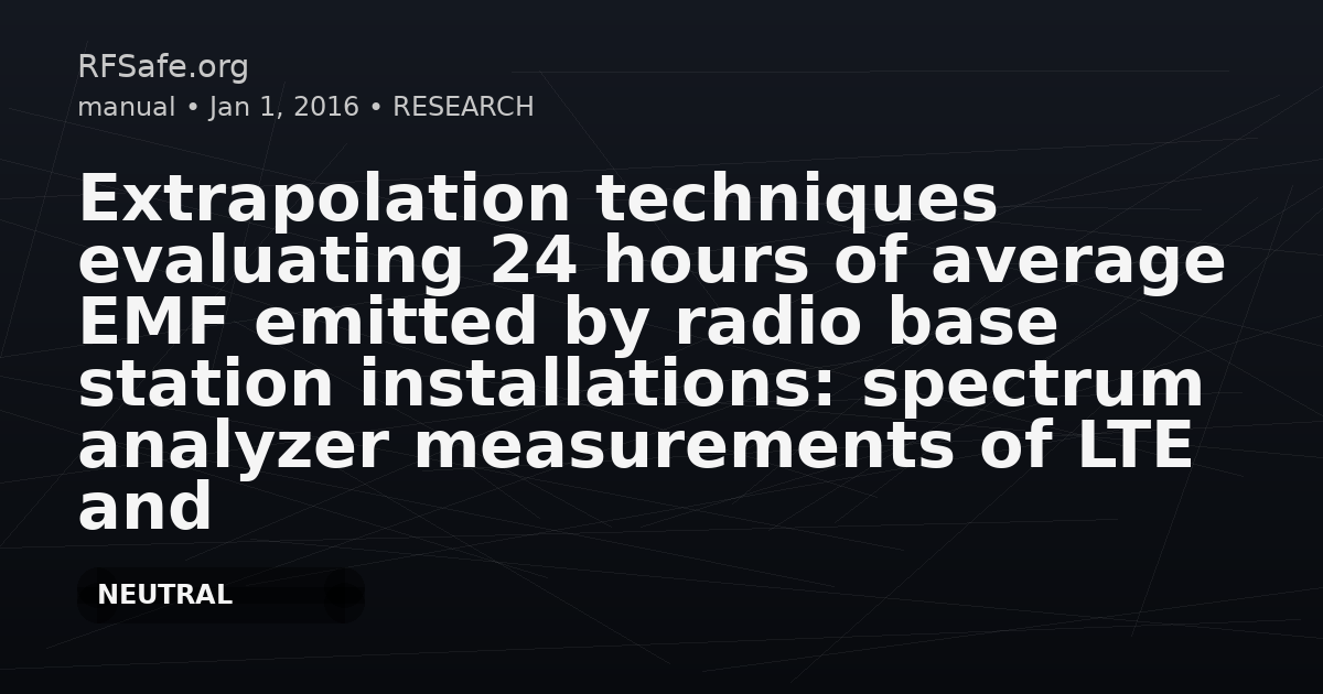 "main_findings": "Vector spectrum analyzer measurements of UMTS and LTE base station signals were used to identify technical critical aspects of guideline-referenced extrapolation techniques for estimating 24-hour average EMF. The measurements were used to evaluate the reliability of extrapolation results and to inform operating procedures for compliance control activities.",