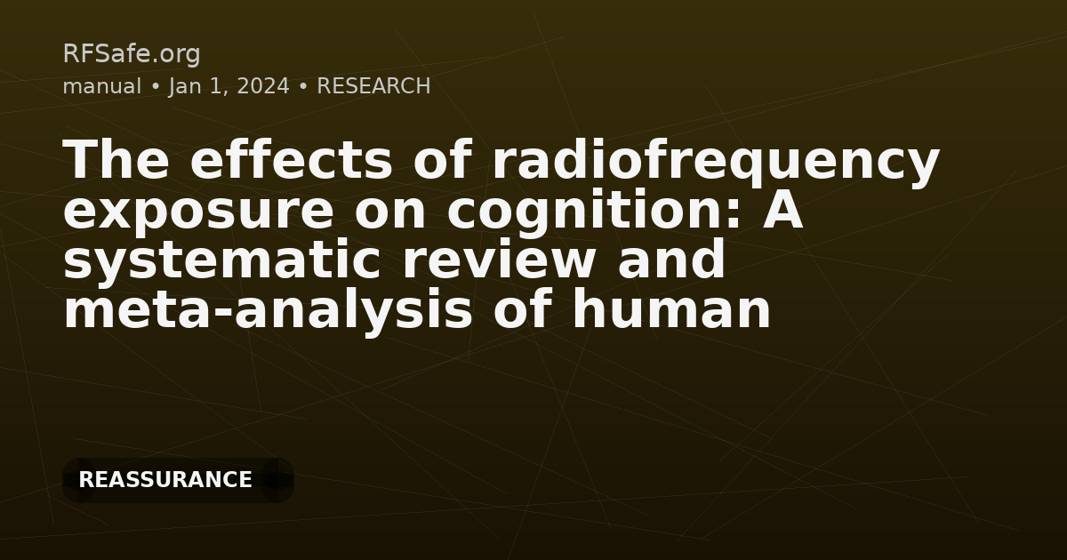 "facebook": "A 2024 systematic review and meta-analysis of human observational studies (5 studies; 4 cohorts; 4639 participants) reported very low to low certainty evidence of little to no association between mobile phone-related RF-EMF exposure and several cognitive domains (learning/memory, executive function, complex attention), and found no exposure–response relationship.",