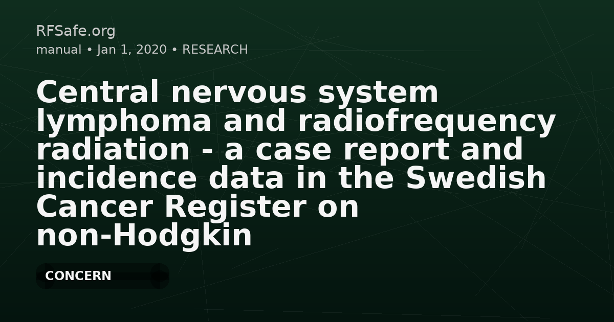 "linkedin": "This article (case report + incidence discussion) proposes a hypothesis that hand-held mobile phone RF exposure may be a risk factor for primary CNS lymphoma, and contextualizes it with Swedish non-Hodgkin lymphoma incidence trends and cited animal evidence (including NTP)."