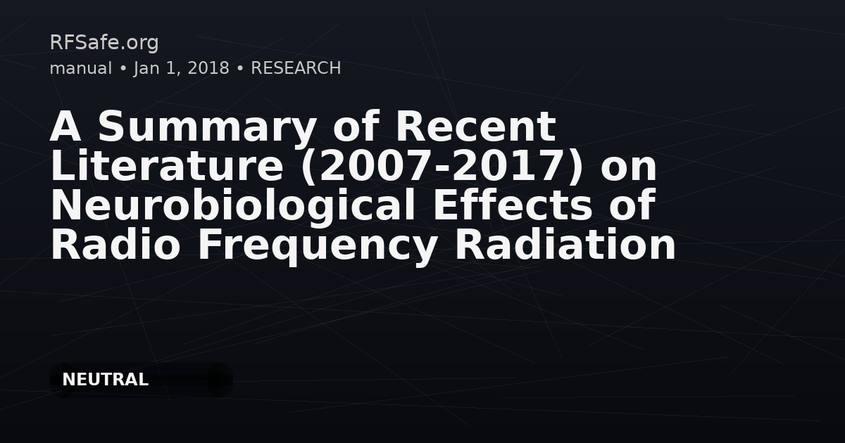 A Summary of Recent Literature (2007-2017) on Neurobiological Effects of Radio Frequency Radiation