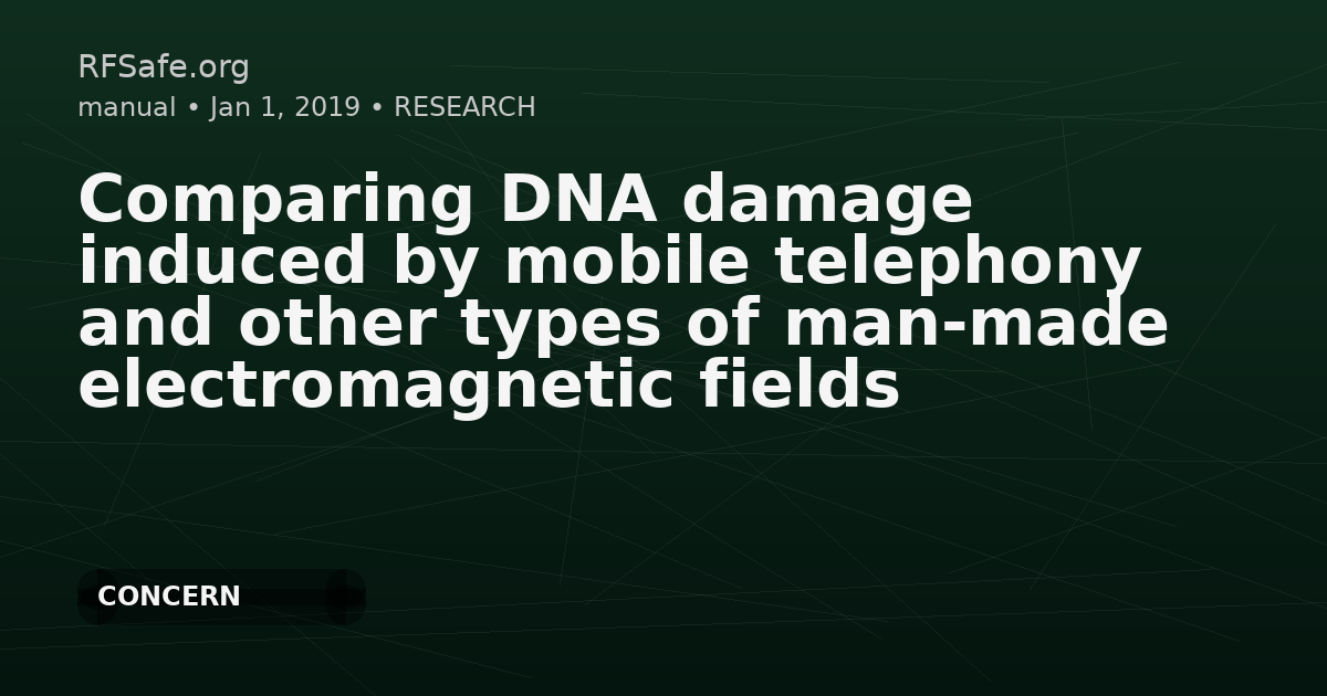 Comparing DNA Damage Induced by Mobile Telephony and Other Types of Man-Made Electromagnetic Fields Panagopoulos DJ. Comparing DNA damage induced by mobile telephony and other types of man-made electromagnetic fields. Mutation Research/Reviews in Mutation Research. Published online Mar 11, 2019. doi.org. Abstract The number of studies showing adverse effects on living organisms induced by different types of man-made Electromagnetic Fields (EMFs) has increased tremendously. Hundreds of peer reviewed published studies show a variety of effects, the most important being DNA damage which is linked to cancer, neurodegenerative diseases, reproductive declines etc. Those studies that are far more effective in showing effects employ real-life Mobile Telephony (MT) exposures emitted by commercially available mobile phones. The present review - of results published by my group from 2006 until 2016 - compares DNA fragmentation induced by six different EMFs on the same biological system - the oogenesis of Drosophila melanogaster - under identical conditions and procedures. Such a direct comparison between different EMFs - especially those employed in daily life - on the same biological endpoint, is very useful for drawing conclusions on their bioactivity, and novel. It shows that real MT EMFs are far more damaging than 50 Hz alternating magnetic field (MF) - similar or much stronger to those of power lines - or a pulsed electric field (PEF) found before to increase fertility. The MT EMFs were significantly more bioactive even for much shorter exposure durations than the other EMFs. Moreover, they were more damaging than previously tested cytotoxic agents like certain chemicals, starvation, dehydration. Individual parameters of the real MT EMFs like intensity, frequency, exposure duration, polarization, pulsing, modulation, are discussed in terms of their role in bioactivity. The crucial parameter for the intense bioactivity seems to be the extreme variability of the polarized MT signals, mainly due to the large unpredictable intensity changes. Excerpts Thus, the present study makes the point that once a specific EMF is polarized (and coherent), includes ELFs, and has adequate intensity, then variability in its parameters (especially in its intensity) is of decisive importance in terms of its bioactivity. In the present study this was shown, a) by the direct comparison between six different EMFs in terms of their ability to induce DNA fragmentation in my studies, b) by indirect comparison between the effects of real MT EMFs in my studies and simulated MT EMFs in other studies, both directly compared with corresponding effects of a 50 Hz alternating MF, and c) by the large difference in bioactivity between simulated MT signals with invariable parameters and real MT (highly variable) ones from a great number of reviewed studies. This important point in terms of biological activity and public health protection should be further confirmed experimentally by direct comparison of effects between simulated and real MT EMFs of the same average parameters. The importance of exposure variability shown in the present study implies the need to define EMF-exposures not only by frequency components and average intensity values, but by reporting maximum and minimum intensity as well, frequency variations, pulsing or continuous wave, modulation, and - of course - polarization. Moreover, in published reviews of experimental studies employing MT and other types of microwave telecommunication EMFs such as DECT phones, Wi-Fi etc, it must be explicitly reported whether the exposures were real from commercially available devices or simulated from generators, test phones, etc. The present study further confirms my previous results and conclusions that experiments should employ real-life and not simulated EMFs, and human/animal exposure to microwave telecommunication EMFs should be drastically reduced by prudent use, and establishment of much stringer exposure limits by the responsible health authorities. sciencedirect.com