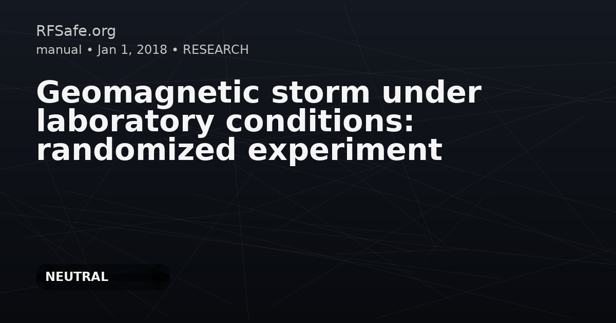 Geomagnetic storm under laboratory conditions: randomized experiment Oleg Grigoriev, Chairman of the Russian National Committee on Non-Ionizing Radiation Protection, sent me the following paper after I disseminated the study above: Gurfinkel YI, Vasin AL, Pishchalnikov RY, Sarimov RM, Sasonko ML, Matveeva TA. Geomagnetic storm under laboratory conditions: randomized experiment. Int J Biometeorol. 2018 Apr;62(4):501-512. doi: 10.1007/s00484- 017-1460-8. Abstract The influence of the previously recorded geomagnetic storm (GS) on human cardiovascular system and microcirculation has been studied under laboratory conditions. Healthy volunteers in lying position were exposed under two artificially created conditions: quiet (Q) and storm (S). The Q regime playbacks a noise-free magnetic field (MF) which is closed to the natural geomagnetic conditions on Moscow's latitude. The S regime playbacks the initially recorded 6-h geomagnetic storm which is repeated four times sequentially. The cardiovascular response to the GS impact was assessed by measuring capillary blood velocity (CBV) and blood pressure (BP) and by the analysis of the 24-h ECG recording. A storm-to-quiet ratio for the cardio intervals (CI) and the heart rate variability (HRV) was introduced in order to reveal the average over group significant differences of HRV. An individual sensitivity to the GS was estimated using the autocorrelation function analysis of the high-frequency (HF) part of the CI spectrum. The autocorrelation analysis allowed for detection a group of subjects of study which autocorrelation functions (ACF) react differently in the Q and S regimes of exposure. ncbi.nlm.nih.gov