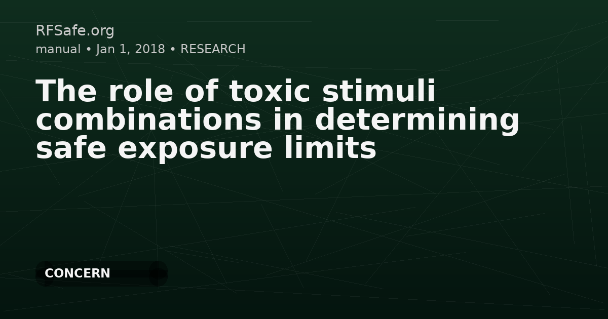 "main_findings": "This editorial reports that an examination of thousands of Medline abstracts typically found combinations of toxic stimuli can produce damage even when each component exposure is below the lowest level that produced damage when tested alone, consistent with synergistic effects. It concludes there is no reason to believe current regulatory exposure limits are fully protective in all real-life exposure scenarios, and states this applies broadly to exposures including radiofrequency radiation (RFR).",