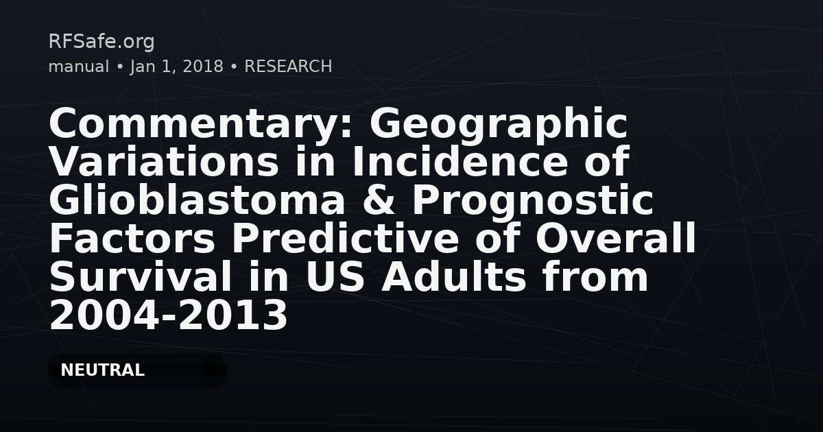 Commentary: Geographic Variations in Incidence of Glioblastoma & Prognostic Factors Predictive of Overall Survival in US Adults from 2004-2013