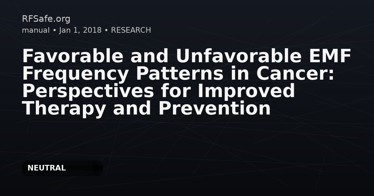 The authors report an analysis of 100 EMF frequency data points drawn from meta-analyses of 123 earlier biomedical studies, describing a fractal pattern with 12 purported beneficial (anti-cancer) and 12 purported detrimental (cancer-promoting) frequencies. They propose that coherent EMF exposures at certain frequencies could inhibit, stabilize, or potentially cure cancer, while other frequencies could initiate or promote cancer.