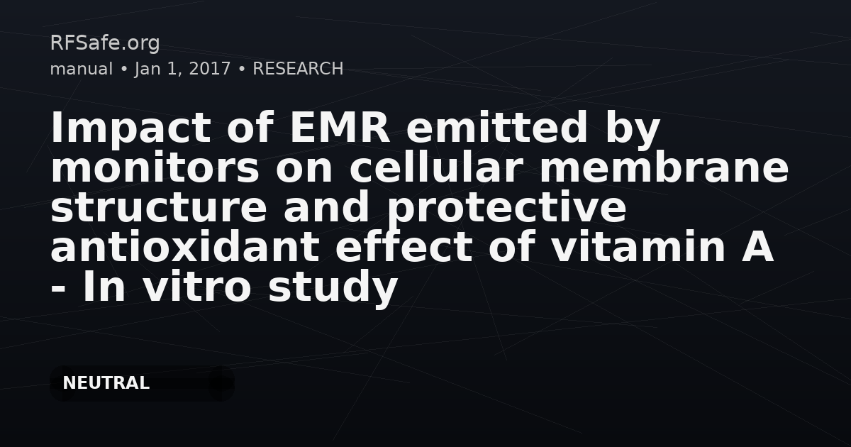 Impact of EMR emitted by monitors on cellular membrane structure and protective antioxidant effect of vitamin A - In vitro study Lewicka M, Henrykowska G, Zawadzka M, Rutkowski M, Pacholski K, Buczyński A. Impact of electromagnetic radiation emitted by monitors on changes in the cellular membrane structure and protective antioxidant effect of vitamin A - In vitro study. Int J Occup Med Environ Health. 2017 Jul 14;30(5):695-703. doi: 10.13075/ijomeh.1896.00851. Abstract OBJECTIVES: The increasing number of devices emitting electromagnetic radiation (EMR) in people's everyday life attracted the attention of researchers because of possible adverse effects of this factor on living organisms. One of the EMR effect may be peroxidation of lipid membranes formed as a result of free radical process. The article presents the results of in vitro studies aimed at identifying changes in malondialdehyde (MDA) concentration - a marker of lipid peroxidation and antioxidant role of vitamin A during the exposure of blood platelets to electromagnetic radiation generated by liquid-crystal-display (LCD) monitors. MATERIAL AND METHODS: Electromagnetic radiation emitted by LCD monitors is characterized by parameters: 1 kHz frequency and 220 V/m intensity (15 cm from display screen). The time of exposure was 30 and 60 min. The study was conducted on porcine blood platelets. The samples were divided into 6 groups: unexposed to radiation, unexposed + vitamin A, exposed for 30 min, exposed for 30 min + vitamin A, exposed for 60 min, exposed for 60 min + vitamin A. RESULTS: The MDA concentration in blood platelets increases significantly as compared to control values after 60 min of exposure to EMR. A significant decrease in MDA concentration after the addition of vitamin A was noticed. In the blood samples exposed to EMR for 30 and 60 min the MDA concentration was significantly increased by addition of vitamin A. CONCLUSIONS: The results show the possibly negative effect of electromagnetic radiation on the cellular membrane structure manifested by changes in malondialdehyde concentration and indicate a possible protective role of vitamin A in this process. ncbi.nlm.nih.gov Mortazavi SMJ. Letter to the Editor (July 26, 2017) concerning the paper "Impact of electromagnetic radiation emitted by monitors on changes in the cellular membrane structure and protective antioxidant effect of vitamin A - In vitro study". Int J Occup Med Environ Health. 2018 Jan 15;31(3):371-372. doi: 10.13075/ijomeh.1896.01245. ijomeh.eu by-monitors-on-changes-in,80565,0,2.html