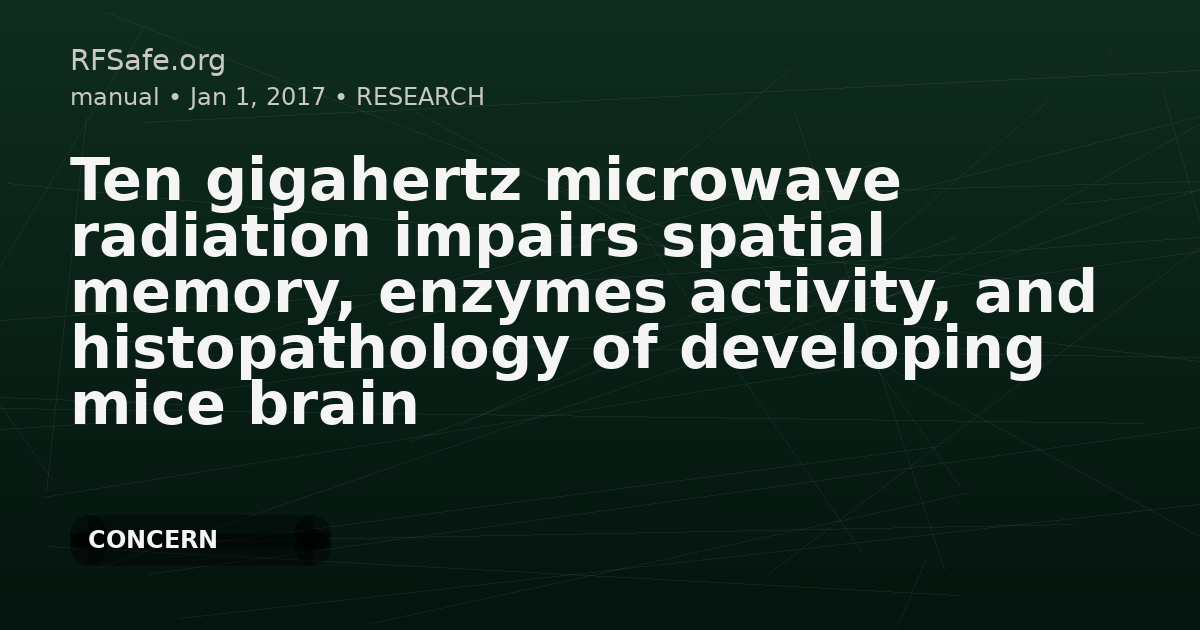 Ten gigahertz microwave radiation impairs spatial memory, enzymes activity, and histopathology of developing mice brain