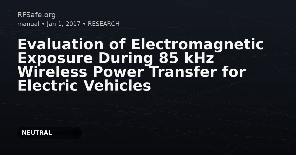 "main_findings": "The study reports dosimetric evaluation of an 85 kHz EV wireless power transfer system across multiple exposure scenarios (e.g., shielding vs no shielding, alignment vs misalignment, and presence of a metal plate) and investigates minimum accessible distances and maximum allowable transmitting power for compliance with international safety guideline limits.",