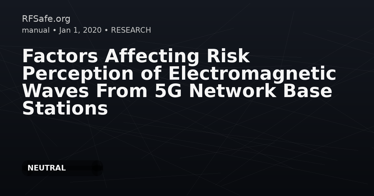 Factors Affecting Risk Perception of Electromagnetic Waves From 5G Network Base Stations Tae Hwan Koh, Jae Wook Choi, Myungsoon Seo, Hyung-Do Choi, KyungHee Kim. Factors Affecting Risk Perception of Electromagnetic Waves From 5G Network Base Stations. Bioelectromagnetics. 31 August 2020. doi.org. Grant sponsor: ICT R&D program of MSIT/IITP (A Study on Public Health and Safety in a Complex EMF Environment); grant number: 2019-0-00102. Abstract The coverage of the fifth-generation network has increased steadily since the network was introduced in 2019. However, public protests around the globe against the construction of 5G network base stations have continued to occur for fear that electromagnetic (EM) waves emitted from the stations would cause adverse health effects. To identify factors that have contributed to such increased risk perception, we conducted a cross-sectional study using data obtained from a survey that assessed Korean adults' risk perception of EM wave-related objects. We found that female gender, high level of perceived exposure to EM waves, evaluation of public policies as ineffective, and high level of objective knowledge on EM waves were associated with increased risk perception. Furthermore, we found that higher ratings on a few risk characteristics such as "personal knowledge," "seriousness of the risk to future generations," "dreadfulness," and "severity of consequences" were also associated with increased risk perception as well. Open access paper: onlinelibrary.wiley.com