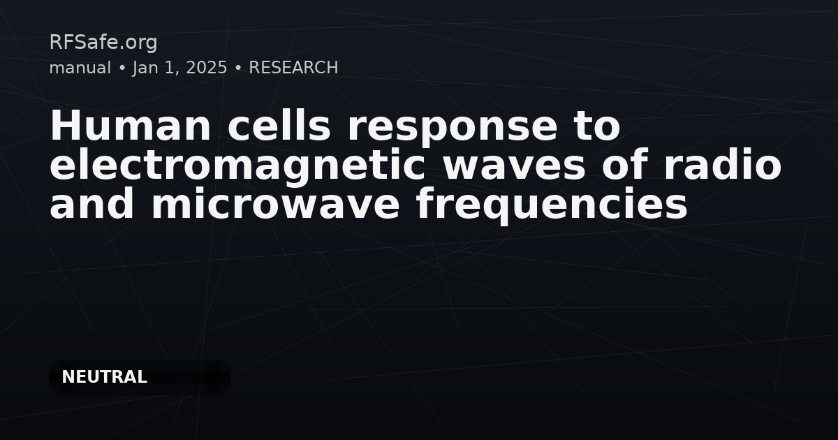 Category: Cell Biology, Electromagnetic Safety Review Tags: electromagnetic waves, human cells, radiofrequency, microwave, health risk, diagnostics, cancer DOI: 10.15407/ubj97.06.005 URL: ukrbiochemjournal.org Overview Human cells are known to both generate and absorb electromagnetic waves (EMW), encompassing a range of frequencies including radio (RF) and microwave (MW). However, the understanding of how cells sense and respond to EMW—especially at different Hertz (Hz) frequencies—remains incomplete and is a subject of ongoing investigation. Findings - The health impacts of exposure to RF and MW frequencies are reported as variable across studies. - Risks cited in the literature range from negative effects on human health, suggesting potential harm, to beneficial outcomes in the context of diagnostic innovation and disease treatment (e.g., for cancer). - Recent research has shed light on molecular mechanisms by which RF and MW exposure interacts with cellular pathways. Conclusion This review synthesizes current knowledge and proposes future directions for practical, safe, and productive application of electromagnetic waves in human biology and medical practice. Awareness of both potential risks and promising medical uses is critical when considering EMW exposure and regulation.