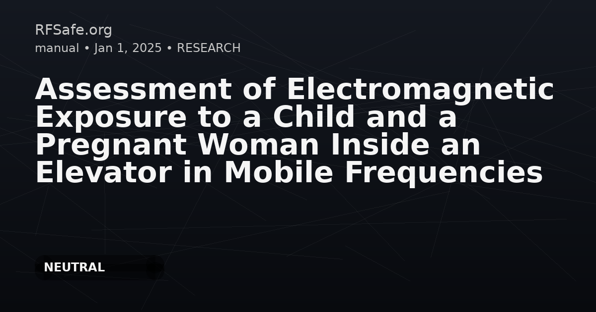 Category: Dosimetry, Electromagnetic Safety Tags: electromagnetic fields, SAR, children, pregnant women, elevators, mobile phones, thermal safety DOI: 10.3390/telecom6030052 URL: mdpi.com Overview This study presents an in-depth dosimetry analysis of energy assimilation from electromagnetic waves and temperature increases during mobile phone usage within an elevator cabin. The cellphone operates at two different frequencies (1000 MHz and 1800 MHz) and is simulated at three different talk positions: vertical, tilt, and cheek. Realistic numerical models of a woman in the third trimester of pregnancy and a five-year-old girl are used. The analysis highlights the necessity of a comprehensive approach to fully grasp the complexities of EM exposure. Findings - Subjects: A five-year-old girl (Roberta), a pregnant woman at seven months gestation (Pregnant II), and her fetus were evaluated using anatomically precise virtual computational models. - Methodology: Forty-eight separate configurations involving these phantoms in various arrangements and phone orientations were analyzed inside an elevator cabin. - Measurements: Detailed results were obtained for SAR10g, SAR-wb, and Tmax for all anatomical models, including the fetus. - Configurations: The study meticulously examined how subject positioning affects SAR and temperature metrics, especially for the seven-month fetus. Conclusion An integrated approach is essential for a full understanding of EM exposure, as variations in configuration significantly impact absorption and temperature increases. The findings underscore the importance of investigating all possible exposure scenarios to ensure comprehensive conclusions about EM field safety. This investigation highlights the critical need for further exploration of EM effects in elevator cabins under different occupancy and device frequency conditions. These studies are crucial for developing targeted safety guidelines, especially since exposure risks are amplified in enclosed spaces. This research supports the formulation of better health and safety standards for vulnerable populations—particularly children and pregnant women—and emphasizes the connection between EM field exposure and potential health risks.