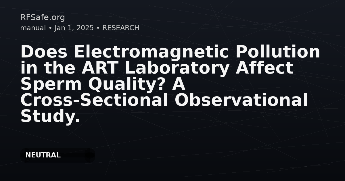 Category: Reproductive Health, Electromagnetic Field Research Tags: EMF exposure, sperm motility, ART laboratory, mobile phone radiation, Wi-Fi, male reproductive health, IVF laboratory DOI: 10.3390/toxics13060510 URL: mdpi.com Overview In recent decades, exposure to electromagnetic fields (EMFs) generated by standard devices has raised concerns about possible effects on reproductive health. This cross-sectional observational study examined the impact of EMFs on sperm motility in a sample of 102 healthy males aged 20-35 years in the IVF laboratory. Semen samples were exposed to different sources of EMF for one hour, and motility was assessed immediately thereafter. Findings - Significant reduction in progressive sperm motility was observed after exposure to EMFs generated by mobile phones and Wi-Fi repeaters in the laboratory environment. - Other electromagnetic-emitting equipment did not result in significant effects on sperm motility. Conclusion The study demonstrated a statistically significant reduction in progressive sperm motility following in vitro exposure to EMFs emitted by mobile communication devices and wireless local area network access points. These findings indicate a potential negative impact of specific EMF sources on semen quality and highlight the need for further comprehensive research. The ultimate aim is to better understand clinical implications and to develop strategies that could mitigate the risks to male reproductive health. - Recommendation: Discourages the introduction of mobile phones in IVF laboratories and recommends positioning Wi-Fi repeaters on the ceiling.