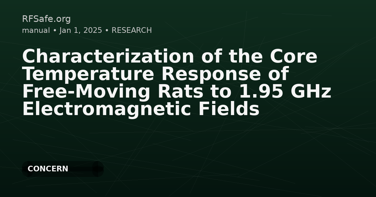 Category: Bioelectromagnetics, Physiology Tags: RF-EMF, rat study, core body temperature, specific absorption rate, electromagnetic field exposure, thermal response, animal model DOI: 10.1002/bem.70013 URL: onlinelibrary.wiley.com Overview This study examined how free-moving adult male and female Sprague Dawley rats responded in core body temperature (CBT) to exposure at 1.95 GHz radiofrequency electromagnetic fields (RF-EMFs). Using temperature capsules implanted in the rats' intraperitoneal cavities and radiotelemetry, researchers measured CBT changes during and after a 3-hour RF-EMF exposure inside specially designed reverberation chambers. Findings - Rats were exposed to RF-EMFs at whole-body average specific absorption rate (WBA-SAR) levels of 0.1, 0.4, and 4 W/kg, compared with a sham (no exposure) control. - Significant peak increase in CBT (+0.49°C) was detected after 26 minutes of exposure at 4 W/kg, with no significant increase at 0.1 or 0.4 W/kg at that same time. - In the last 30 minutes of RF-EMF exposure: - 4 W/kg: temperature increase of 0.62°C - 0.4 W/kg: temperature increase of 0.14°C - 0.1 W/kg: no significant temperature increase - Twenty minutes after exposure ended, only the 4 W/kg group retained a significantly higher temperature compared to sham (+0.37°C). - The maximum CBT increase remained less than 1°C, suggesting effective thermoregulatory compensation up to these RF-EMF exposures. - Temperature elevation at 4 W/kg significantly decreased immediately upon the end of exposure, highlighting that post-exposure measurement may underestimate maximum temperature effects of RF-EMF. Conclusion The study demonstrates that RF-EMF exposures at higher SAR values (notably 4 W/kg) can cause measurable thermal effects in animal models. While the rats compensated well for thermal load, these findings confirm a physiological response to electromagnetic fields, which supports the importance of safety limits when considering health risks from electromagnetic field exposures.