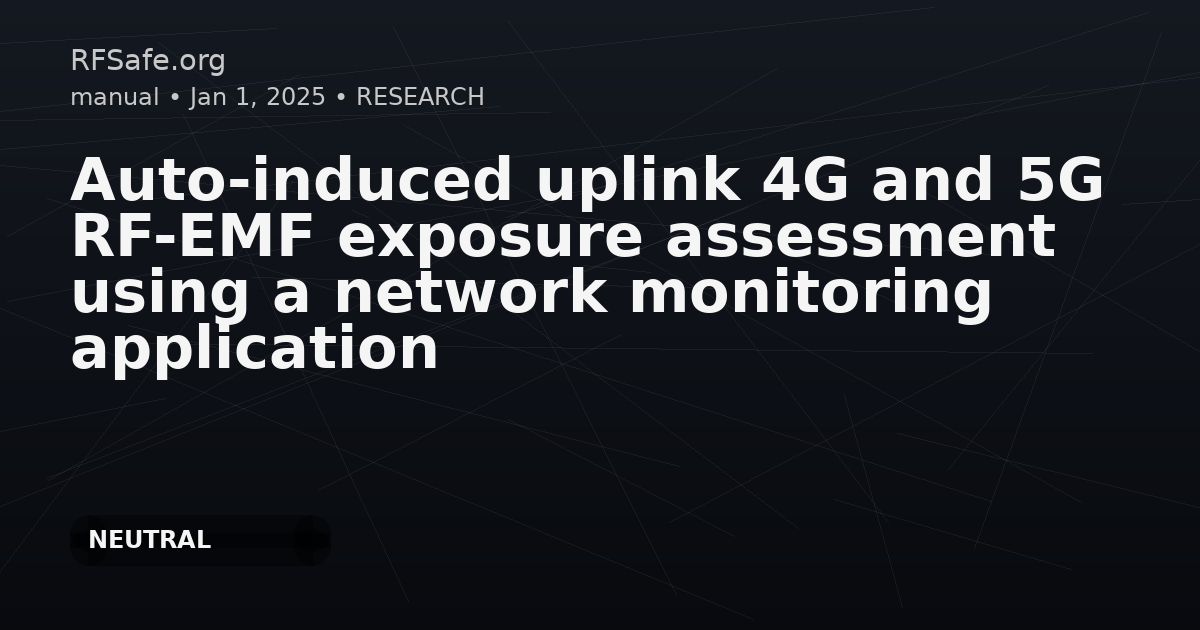 Auto-induced uplink 4G and 5G RF-EMF exposure assessment using a network monitoring application in different microenvironments across seven European countries Stroobandt B, Van Bladel H, Veludo AF, Deprez K, Aerts S, Verloock L, Thuróczy G, Politanski P, Polanska K, Tognola G, Parazzini M, Wiart J, Guxens M, Röösli M, Joseph W. Auto-induced uplink 4G and 5G RF- EMF exposure assessment using a network monitoring application in different microenvironments across seven European countries. Environmental Research, 2025, doi: 10.1016/j.envres.2025.121029. Highlights Assessment of uplink 4G and 5G microenvironmental RF-EMF exposure in Europe Novel methodology using network monitoring application QualiPoc for 4G and 5G Transmit powers were higher in villages than in big cities, with 5G lower than 4G Base station density was suggested as key predictor of auto-induced uplink exposure Transmit powers are related to uplink duty cycles and frequency band usage Abstract The auto-induced uplink (a-UL) radio-frequency electromagnetic field (RF-EMF), often the dominant part of the total RF-EMF exposure, has not been included in previous microenvironmental studies. As 5G exposure depends more on mobile phone usage, monitoring typical transmit power levels is crucial towards more accurate personal exposure assessment. This study describes spatial differences in average mobile phone transmit power and investigates the influence of uplink duty cycles and frequency band usage. A novel methodology using the network monitoring application QualiPoc in fourth- generation (4G) and non-standalone fifth-generation (5G) networks was presented. For the first time, the assessment of 4G and 5G a-UL RF-EMF exposure was conducted simultaneously in a large-scale microenvironmental study in Europe. Measurements were performed along predefined routes in 282 different microenvironments (e.g., parks, residential areas) across seven European countries, during a maximum uplink usage scenario. The Netherlands had the highest average transmit powers per microenvironment (median 20.6 dBm). Transmit powers in villages were 0.6 to 2.1 dB higher than in big cities. The study suggested that base station density is a key predictor of a-UL exposure. Comparing technologies and frequency bands, average transmit powers for 5G were about 3.3 dB lower than for 4G and lowest for frequency bands with a time division duplexing (TDD) scheme due to the low uplink duty cycle (below 20%). This study provides crucial measurement data for epidemiologists and governments to enhance the understanding of the a-UL component of personal RF-EMF exposure. sciencedirect.com