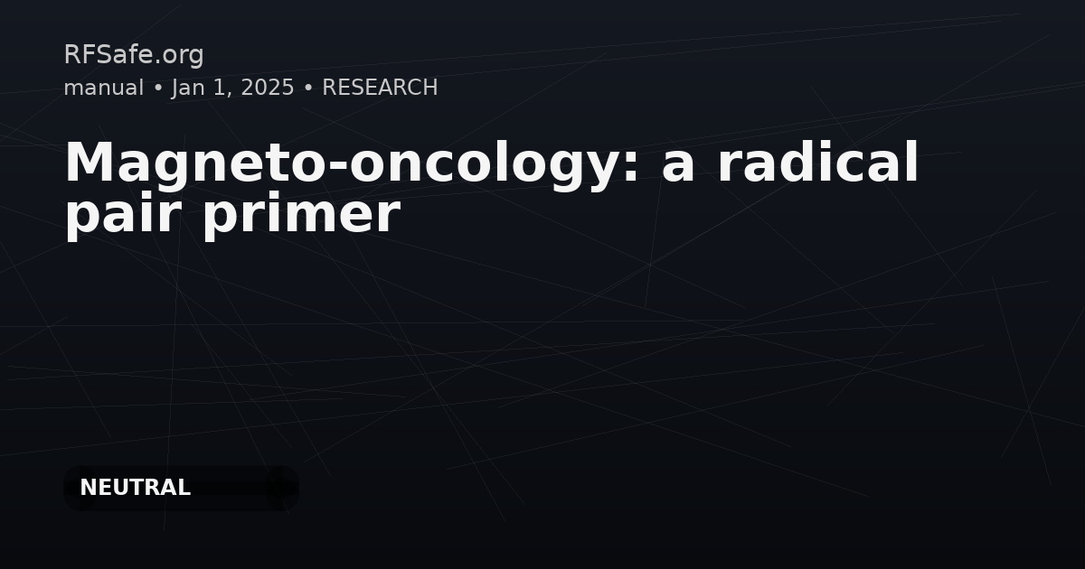 Category: Oncology, Biophysics Tags: magneto-oncology, radical pairs, magnetic fields, biochemistry, cancer, biomedical effects, EMF safety DOI: 10.3389/fonc.2025.1539718 URL: frontiersin.org Overview There are few well-established biophysical mechanisms by which external magnetic fields can influence the biochemistry of molecules in living systems. The radical pair mechanism is arguably the most promising. Findings - This mini-review summarizes the characteristics of radical pairs in a format useful for those working in magneto-oncology. - It aims to assist researchers in determining whether biomedical magnetic field effects may originate from radical pair biochemistry. Conclusion By understanding the radical pair mechanism, researchers can develop physically plausible models and refine therapeutic protocols. This approach also aids in identifying possible experimental artifacts that may arise in magnetic field research relating to oncology. It is important to note the connection between external magnetic field exposure and biochemical changes, especially in contexts like cancer studies, given the health risks associated with electromagnetic fields.