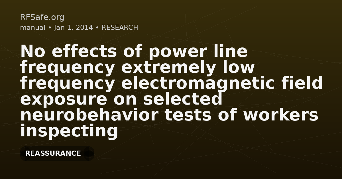No effects of power line frequency extremely low frequency electromagnetic field exposure on selected neurobehavior tests of workers inspecting transformers and distribution line stations versus controls