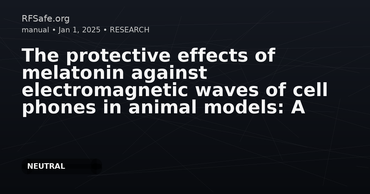 The protective effects of melatonin against electromagnetic waves of cell phones in animal models: A systematic review Amiri M, Khazaie H, Mohammadi M. The protective effects of melatonin against electromagnetic waves of cell phones in animal models: A systematic review. Animal Model Exp Med. 2025 Feb 24. doi: 10.1002/ame2.12552. Abstract Background: Due to the widespread use of cell phone devices today, numerous research studies have focused on the adverse effects of electromagnetic radiation on human neuropsychological and reproductive systems. In most studies, oxidative stress has been identified as the primary pathophysiological mechanism underlying the harmful effects of electromagnetic waves. This paper aims to provide a holistic review of the protective effects of melatonin against cell phone-induced electromagnetic waves on various organs. Methods: This study is a systematic review of articles chosen by searching Google Scholar, PubMed, Embase, Scopus, Web of Science, and Science Direct using the keywords 'melatonin', 'cell phone radiation', and 'animal model'. The search focused on articles written in English, which were reviewed and evaluated. The PRISMA process was used to review the articles chosen for the study, and the JBI checklist was used to check the quality of the reviewed articles. Results: In the final review of 11 valid quality-checked articles, the effects of melatonin in the intervention group, the effects of electromagnetic waves in the case group, and the amount of melatonin in the chosen organ, i.e. brain, skin, eyes, testis and the kidney were thoroughly examined. The review showed that electromagnetic waves increase cellular anti-oxidative activity in different tissues such as the brain, the skin, the eyes, the testis, and the kidneys. Melatonin can considerably augment the anti-oxidative system of cells and protect tissues; these measurements were significantly increased in control groups. Electromagnetic waves can induce tissue atrophy and cell death in various organs including the brain and the skin and this effect was highly decreased by melatonin. Conclusion: Our review confirms that melatonin effectively protects the organs of animal models against electromagnetic waves. In light of this conclusion and the current world-wide use of melatonin, future studies should advance to the stages of human clinical trials. We also recommend that more research in the field of melatonin physiology is conducted in order to protect exposed cells from dying and that melatonin should be considered as a pharmaceutical option for treating the complications resulting from electromagnetic waves in humans. Conclusion Electromagnetic radiation emitted from cell phones is proven to be harmful to various organs in animal models and the results of the current literature survey suggest that additional research should be done to achieve the best possible use of melatonin as a therapeutic agent against electromagnetic waves. Melatonin is one of the safest drugs, used for many years to help people with sleep disturbances. In order to take this research to clinical levels, it will be important to assess the primary pathophysiological theory of damage and also the mechanisms by which melatonin may protect against the specific threat, among which the most likely is by increasing the amount of antioxidants in various organs. Future reviews and interventional studies in this field should focus on determining the optimal dose and timing of melatonin administration to enhance understanding of its protective effects. Additionally, efforts should be made to develop and improve clinical trials to evaluate the benefits of melatonin in humans, enabling a deeper investigation into its potential applications and advantages in clinical settings. Open access paper: onlinelibrary.wiley.com