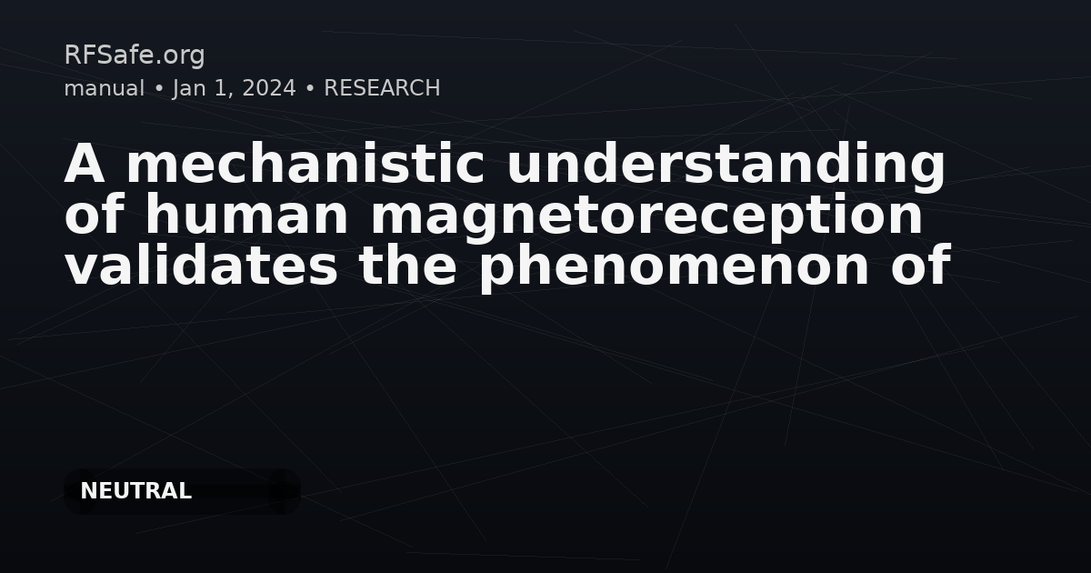 A mechanistic understanding of human magnetoreception validates the phenomenon of electromagnetic hypersensitivity (EHS) Henshaw DL, Philips A. (2024). A mechanistic understanding of human magnetoreception validates the phenomenon of electromagnetic hypersensitivity (EHS). International Journal of Radiation Biology, 1–19. doi: 10.1080/09553002.2024.2435329. Abstract Background Human electromagnetic hypersensitivity (EHS) or electrosensitivity (ES) symptoms in response to anthropogenic electromagnetic fields (EMFs) at levels below current international safety standards are generally considered to be nocebo effects by conventional medical science. In the wider field of magnetoreception in biology, our understanding of mechanisms and processes of magnetic field (MF) interactions is more advanced. Methods We consulted a range of publication databases to identify the key advances in understanding of magnetoreception across the wide animal kingdom of life. Results We examined primary MF/EMF sensing and subsequent coupling to the nervous system and the brain. Magnetite particles in our brains and other tissues can transduce MFs/EMFs, including at microwave frequencies. The radical pair mechanism (RPM) is accepted as the main basis of the magnetic compass in birds and other species, acting via cryptochrome protein molecules in the eye. In some cases, extraordinary sensitivity is observed, several thousand times below that of the geomagnetic field. Bird compass disorientation by radio frequency (RF) EMFs is known. Conclusions Interdisciplinary research has established that all forms of life can respond to MFs. Research shows that human cryptochromes exhibit magnetosensitivity. Most existing provocation studies have failed to confirm EHS as an environmental illness. We attribute this to a fundamental lack of understanding of the mechanisms and processes involved, which have resulted in the design of inappropriate and inadequate tests. We conclude that future research into EHS needs a quantum mechanistic approach on the basis of existing biological knowledge of the magnetosensitivity of living organisms. Conclusions and recommendations 1. At the scientific level, researchers working in the field of magnetoreception in biology should be made aware of EHS as a human public health concern and funded to address the issue as part of their scientific research. 2. All interested parties, especially EHS sufferers and medical professionals, should be made aware of the considerable growth in understanding in recent decades of the mechanisms by which all forms of life sense MFs/EMFs, even at extremely low levels. EHS research to date has been significantly hindered by a fundamental lack of knowledge among many medical scientists and EHS researchers regarding the current scientific understanding of quantum biology mechanisms and processes. This has resulted in the design and analysis of inappropriate provocation tests. 3. Almost all existing epidemiological and provocation studies have failed adequately to determine and measure the necessary dependent and independent variables. In particular: 1. to characterize in proper technical detail the EMF/RF exposures (including electric and MF levels; average and peak power-density levels; frequencies involved; and modulation characteristics). 2. to triage participants effectively to remove ‘electrophobic’ and other volunteers self- reporting apparent EHS-related problems. 3. in provocation studies, to fail to recognize the nonlinear nature of EHS responses and the extremely low levels of exposure (<100 nT) that have effects and, instead, use relatively high exposures fairly close to the ICNIRP and IEEE guidance levels. 4. in provocation studies, to provide a participant-comfortable extremely low EMF/RF test location, screened from anthropogenic sources and allow adequate time (days rather than hours) for adverse effects to washout between exposures. 4. EHS studies should move away from current, nonforensic epidemiological approaches and human subjective provocation studies (Leszczynski 2022; Röösli et al. 2024). Instead, objective measurements of biological parameters, such as heart rate variability, brain wave activity (e.g. fMRI and wide-bandwidth EEG), and the immune response to oxidative stress should be investigated (Caswell et al. 2016; Gurfinkel et al. 2018; Pishchalnikova et al. 2019; Wang et al. 2019; Thoradit et al. 2024). We caution that these approaches require sophisticated design and analysis and advanced design personal exposure meters. 5. We recommend that the WHO properly reevaluates its understanding of EHS to align it with the substantial body of available scientific literature showing mechanistic evidence of interactions of all forms of life, including humans, with low levels of electric and magnetic fields. Open access paper: tandfonline.com