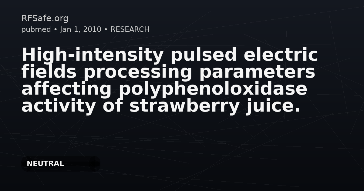 "main_findings": "High-intensity pulsed electric fields (35 kV/cm) strongly reduced polyphenoloxidase activity in strawberry juice across the tested conditions. Bipolar mode was more effective than monopolar, and longer treatment duration reduced enzyme activity; residual PPO activity could be minimized to 2.5% using bipolar treatments with frequency >229 Hz and pulse width 3.23–4.23 μs at 2000 μs total treatment time.",
