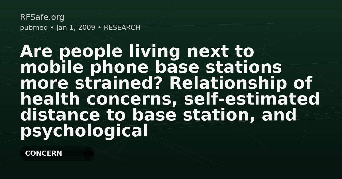 Are people living next to mobile phone base stations more strained? Relationship of health concerns, self-estimated distance to base station, and psychological parameters.