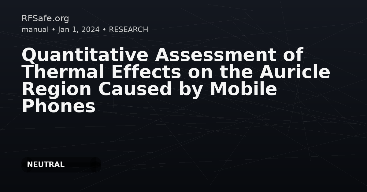 Quantitative Assessment of Thermal Effects on the Auricle Region Caused by Mobile Phones Operating in Different Modes Rok T, Kacprzyk A, Rokita E, Kantor D, and Taton G. Quantitative Assessment of Thermal Effects on the Auricle Region Caused by Mobile Phones Operating in Different Modes. AIMS Biophys 11, no. 4 (2024): 427–44. doi.org. Abstract To analyze thermal effects caused by mobile phones on the human auricle region, we performed an experiment with controlled exposure to mobile phones operating in different modes for a group of 40 men. Temperature changes were measured with the use of infrared thermography. Thermograms were taken before and after a standardized 15-minute phone call when the mobile phone was placed lightly against the skin surface in the auricle region. The measurements were performed in three modes: OFF, ON, and FLIGHT. Statistically significant differences (p = 0.03) were observed between the experimental temperature increase of the auricle region in OFF mode (average temperature rise = 1.1 °C ± 0.2 °C) and in ON mode (average temperature rise = 1.9 °C ± 0.3 °C), while between FLIGHT (average temperature rise = 1.4 °C ± 0.2 °C) and ON modes, no statistical differences were observed (p = 0.20). Based on thermographic measurements and the model of heat transfer between the ear and the phone, it was shown that the human ear is the largest heat source in the system and that the increase in skin temperature is mainly caused by the handheld mobile phone restricting heat dissipation from the skin surface. Excerpt for the assessment of near-field exposure, Received Signal Strength Indicator (RSSI) and Specific Absorption Rate (SAR) were used. During exposure sessions RSSI values were continuously measured and retrospectively controlled. All the participants received exposure at an arbitrary mean value of RSSI between −90 and −80 dBm. The SAR quantifies the absorption of RF-EMF in tissues, and for the human body, it depends on the dielectric properties of tissues due to the complexity of the human head anatomy its estimation is a subject of great challenge [21],[22] and for the phone used (Huawei P20 Lite), it was reported as 0.75 W/kg in the manual. For the far-field exposure a personal exposure meter (ExpoM-RF, Zurich, Switzerland) performing a spectral analysis of RF-EMF within 16 different frequency bands from 87.5 MHz up to 5.875 GHz was used. Based on electric field strength, the power density was calculated as 45 μW. The uplink and downlink radiation remained on a comparable level throughout a simulated phone call. In OFF mode, the smartphone was switched off, while in FLIGHT mode, there was no connection with the GSM network, so music was constantly playing. In ON mode, the mobile phone was fully connected to the GSM network and the smartphone was operating at a frequency of 1800 MHz. Open access paper: aimspress.com