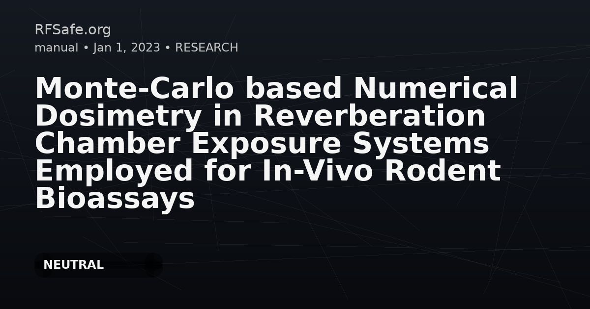 Monte-Carlo based Numerical Dosimetry in Reverberation Chamber Exposure Systems Employed for In-Vivo Rodent Bioassays De Santis V, Di Fracesco A, Foster KR, Bit-Babik G, Faraone A. Monte-Carlo based Numerical Dosimetry in Reverberation Chamber Exposure Systems Employed for In-Vivo Rodent Bioassays. IEEE Access, doi: 10.1109/ACCESS.2023.3251889. Abstract A Monte-Carlo based computational approach for the statistical characterization of the whole-body specific absorption rate (wbSAR) variability in large cohorts of rodents exposed to radio-frequency (RF) energy in reverberation chambers (RCs) is applied to adult male rat exposures illustrative of those in a US National Toxicology Program (NTP) cancer bioassay. A large number of 3D electromagnetic field realizations fulfilling Rayleigh fading properties were generated within an electrically-large volume representative of an ideal RC, yielding granular wbSAR distributions for an ensemble of 96 homogeneous rodent models with random mass distribution, postures, positions and orientations. Two case studies were addressed: a “momentary exposure” with each rat fixed in posture, position and orientation, and a “day-long exposure” in which the position, orientation and posture were varied randomly for each subsequent Rayleigh field realization. Over 500 and 2500 field realizations or “snapshots”, respectively, the rats’ instantaneous wbSARs, as well as their individual time- averaged wbSARs, were found to be well fit by lognormal distributions. The large variability in instantaneous wbSARs in the cohort was due in part to the inherent Rayleigh field variability in RCs (70-80%) and in part to weight, posture and position variations (20-30%), while the effect of cage location was found to be small over day-long exposures. Averaging the exposure over field realizations substantially reduces the range of wbSARs in the cohort. Hence, when RF-induced thermal effects are studied, the relevant exposure metric (wbSAR averaged over appropriate times) features a narrower range than instantaneous wbSAR, which is the relevant metric in studies dealing with non-thermal effects. Compared to previous studies, the present approach was found to be computationally more efficient enabling thus a Monte-Carlo analysis by varying concurrently the incident field and the animals posture, position, and orientation. In practice, it can inform the choice of wbSAR targets in rodent bioassay, allowing to identify possible dose-effect trends while avoiding undue thermal stress. ieeexplore.ieee.org