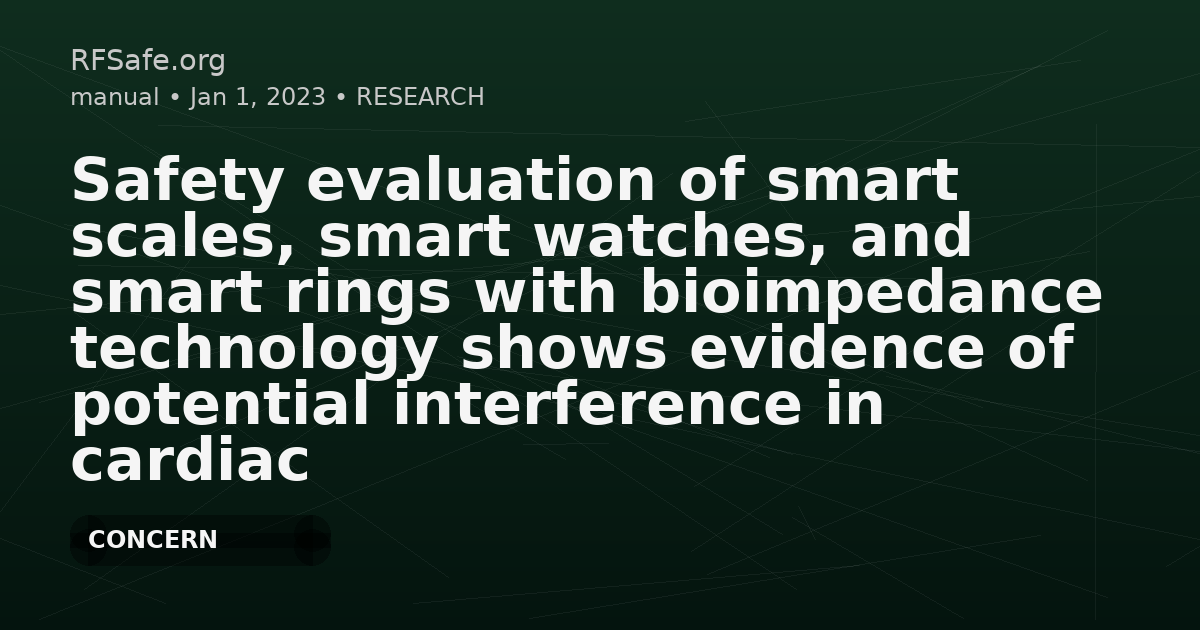 Safety evaluation of smart scales, smart watches, and smart rings with bioimpedance technology shows evidence of potential interference in cardiac implantable electronic devices Ha GB, Steinberg BA, Freedman R, Bayés-Genís A, Sanchez B. Safety evaluation of smart scales, smart watches, and smart rings with bioimpedance technology shows evidence of potential interference in cardiac implantable electronic devices. Heart Rhythm. 2023 Apr;20(4):561-571. doi: 10.1016/j.hrthm.2022.11.026. Abstract Background: Smart scales, smart watches, and smart rings with bioimpedance technology may create interference in patients with cardiac implantable electronic devices (CIEDs). Objectives: The purpose of this study was to determine interference at CIEDs with simulations and benchtop testing, and to compare the results with maximum values defined in the ISO 14117 electromagnetic interference standard for these devices. Methods: The interference at pacing electrodes was determined by simulations on a male and a female computable model. A benchtop evaluation of representative CIEDs from 3 different manufacturers as specified in the ISO 14117 standard also was performed. Results: Simulations showed evidence of interference with voltage values exceeding threshold values defined in the ISO 14117 standard. The level of interference varied with the frequency and amplitude of the bioimpedance signal, and between male and female models. The level of interference generated with smart scale and smart rings simulations was lower than with smart watches. Across device manufacturers, generators demonstrated susceptibility to oversensing and pacing inhibition at different signal amplitudes and frequencies. Conclusions: This study evaluated the safety of smart scales, smart watches, and smart rings with bioimpedance technology via simulation and testing. Our results indicate that these consumer electronic devices could interfere in patients with CIEDs. The present findings do not recommend the use of these devices in this population due to potential interference. pubmed.ncbi.nlm.nih.gov