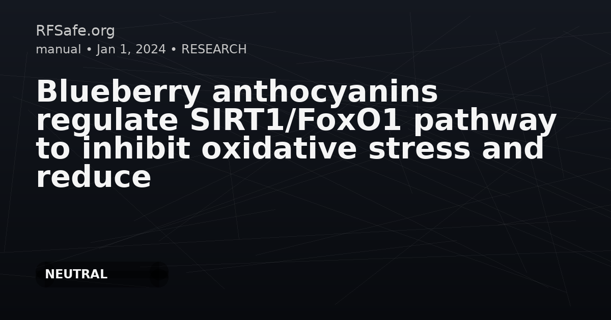 Blueberry anthocyanins regulate SIRT1/FoxO1 pathway to inhibit oxidative stress and reduce testicular tissue damage induced by microwave radiation in rats Pang Y, Men J, Li Y, Zhang J, Zhao L, et al. Blueberry anthocyanins regulate SIRT1/FoxO1 pathway to inhibit oxidative stress and reduce testicular tissue damage induced by microwave radiation in rats. Journal of Functional Foods. Vol. 122, 2024. doi: 10.1016/j.jff.2024.106523. Abstract Researches have shown that microwave radiation could cause oxidative stress injury in male reproductive system, and blueberry anthocyanins had excellent oxidation resistance. Our study aimed to investigate the protective effect of blueberry anthocyanins (100, 200 and 400 mg/kg/d) on testicular tissue damage in Wistar rats exposed to 2.856 GHz microwave and the optimal dose. We found that blueberry anthocyanins could ameliorate the decrease of sperm motility and sex hormone levels and testicular tissue structure damage caused by microwave radiation, increase SIRT1 expression and decrease FoxO1 expression, increase GSH/GSSG, SOD and inhibit MDA. The LDH, SDH and ATP synthase were increased, and Caspase-3 expression was decreased, and the high-dose of blueberry anthocyanins (400 mg/kg/d) had the best protective effect. These results suggested that blueberry anthocyanins could inhibit oxidative stress injury induced by 2.856 GHz microwave radiation in rat testicular tissue by regulating SIRT1/FoxO1 pathway, enhance energy metabolism and reduce cell apoptosis. Open access paper: sciencedirect.com