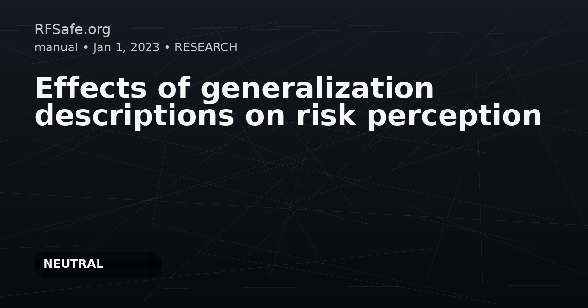 Effects of generalization descriptions on risk perception Freudenstein F, Boerner F, Croft RJ, Leung RWS, Loughran SP, Wiedemann PM. Effects of generalization descriptions on risk perception. Environ Res. 2023 Feb 2:115422. doi: 10.1016/j.envres.2023.115422. Abstract The study addresses the effects of generalization descriptions on risk perceptions. In a 1-factorial online experiment, 629 participants were randomly allocated to one of three groups. Group G1 received an excerpt of an original press release from the International Agency for Research on Cancer (IARC) regarding mobile phones and cancer, classifying RF EMF as possibly carcinogenic to humans. Group G2 received an additional explanatory text module, and Group G3 received a rewritten text, with both G2 and G3 highlighting that the possible cancer risk only refers to mobile phones. Risk perceptions regarding cell phones and related personal devices, base stations, and high voltage power lines were used as dependent variables measured before and after text reading. Further, the degree to which participants generalized from cell phone-related to other RF EMF exposures was assessed to determine whether this was predictive of their post-text risk perceptions. Regarding risk perceptions, no differences between the three groups were observed after reading the presented texts. Instead, all three experimental groups indicated increased risk perceptions for all electromagnetic field sources. However, we found significant differences according to the prevailing risk generalization belief. Respondents expressing a strong risk generalization belief showed significantly higher risk perceptions for all tested EMF sources (except mobile phones) than subjects with a weak risk generalization belief. Highlights • The study investigated how different description formats regarding potential health effects influence risk perception. • Further the role of respondents' risk generalization beliefs was investigated. • The example of risk communication on electromagnetic fields (EMF) was used in an experimental setup. • The study results indicate that all description formats elevated respondents' risk perception. • It is also shown that a strong risk generalization belief leads to higher risk perceptions for all tested EMF sources. Conclusion Our findings point to the usefulness of Reyna's fuzzy trace theory for risk communication research (Reyna, 2021a, 2021b). This is because information does not equal knowledge. Studies analyzing effects of different information provision, such as in our study, cannot assume that the same information leads to the same knowledge and that different information leads to different knowledge. Therefore, it makes sense to consider manipulation checks that are common in psychological experiments from a theoretically perspective. Risk communication research would benefit from considering how information is interpreted and which mental representations are formed is essential when it comes to relevant risk communication. The mental representation of given risk information, particularly the risk generalization belief, is critical for risk perception. These beliefs determine the risk perception of a group of associated exposure sources, in our case, mobile communication devices. Therefore, the risk generalization belief is a significant component of intuitive risk appraisal that should have a place in risk perception studies. Furthermore, we would like to underline that risk assessors should pay attention to indicate the scope of their risk evaluations, i.e., under which conditions and for which exposure sources they are valid. In addition, risk communicators should be aware of people's tendency towards risk generalization, and further research should explore how to correct generalization biases. Open access paper: sciencedirect.com