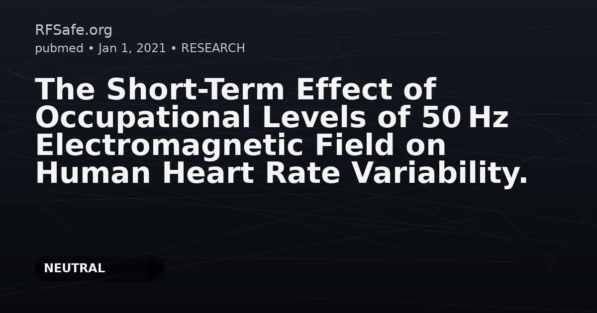 The Short-Term Effect of Occupational Levels of 50 Hz Electromagnetic Field on Human Heart Rate Variability.