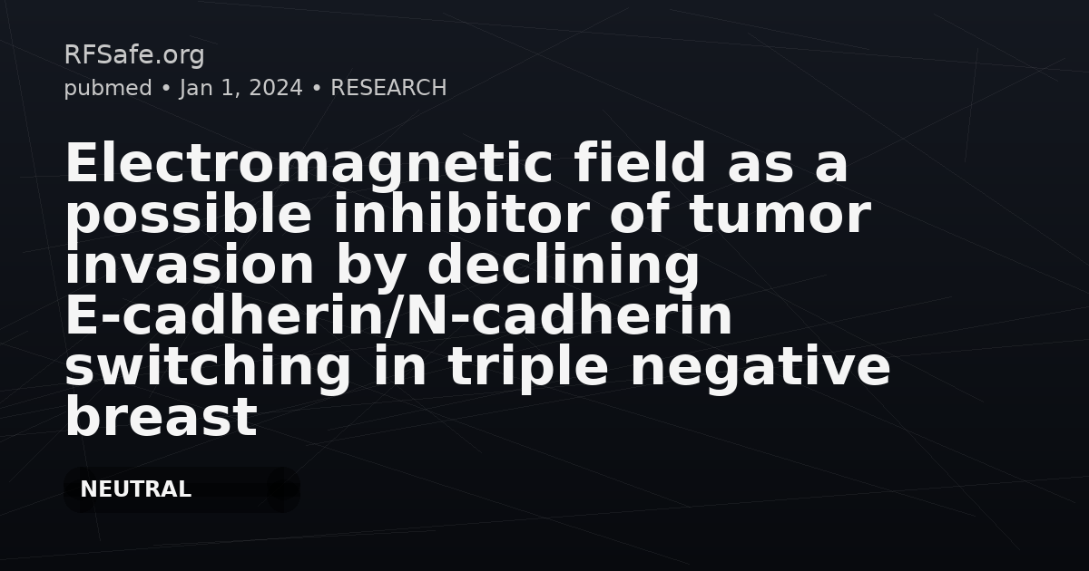 After exposure to a 1 Hz, 100 mT ELF-EMF for 2 h/day over five days, MDA-MB231 cells showed reduced migration and invasion versus sham. In MDA-MB231 cells, E-cadherin mRNA/protein increased and N-cadherin decreased versus sham; in MCF10A cells, E-cadherin mRNA/protein increased versus sham.