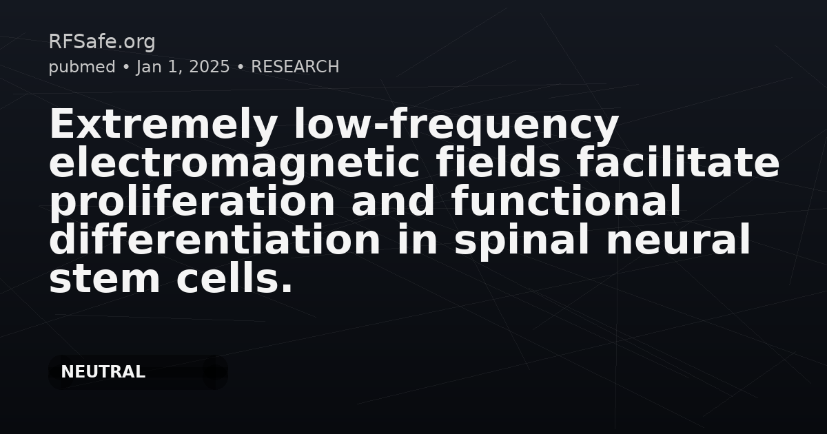 "main_findings": "In spinal cord-derived NSCs from adult mice, ELF-EMFs enhanced cell proliferation and self-renewal, associated with upregulation of Sox2. ELF-EMFs were reported to activate T-type calcium channels and increase calcium currents, with increased intracellular calcium linked to higher NeuroG1/NeuroD1 expression, promoting neuronal differentiation and neurite outgrowth.",