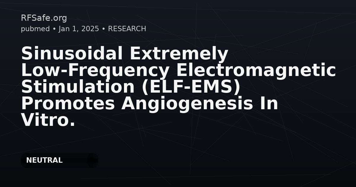 Sinusoidal Extremely Low-Frequency Electromagnetic Stimulation (ELF-EMS) Promotes Angiogenesis In Vitro.