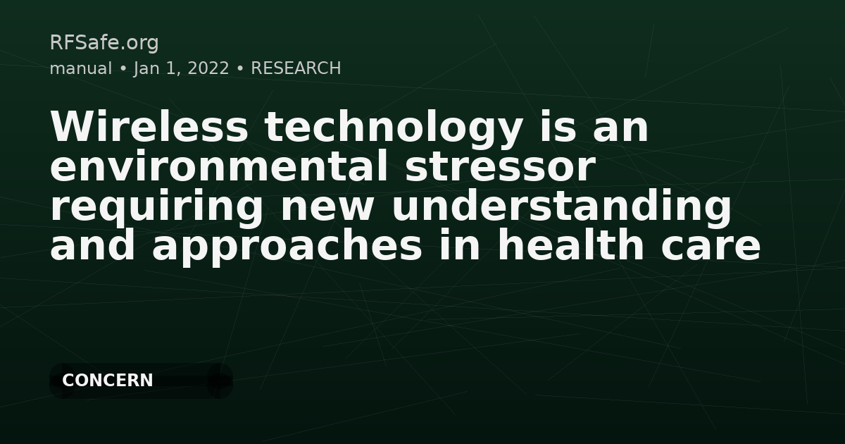 Wireless technology is an environmental stressor requiring new understanding and approaches in health care