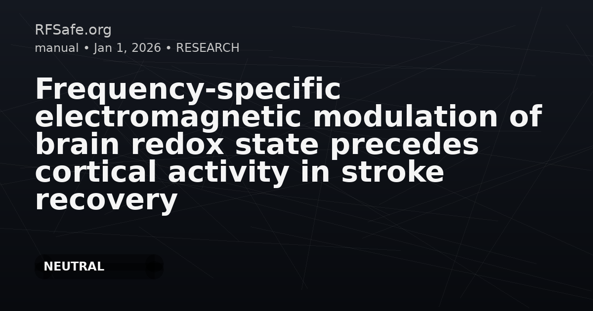 "main_findings": "In mice, chronic daily 40 Hz ELF-EMF exposure over 4 weeks was associated with neuroprotective redox changes across brain regions, reflected in glutathione oxidation state, after an initial redox burden detectable also by urinary isoprostane. Cortical rhythm changes emerged gradually, and enhanced EEG beta power correlated with initial isoprostane levels in mice and with the degree of stroke recovery in humans.",