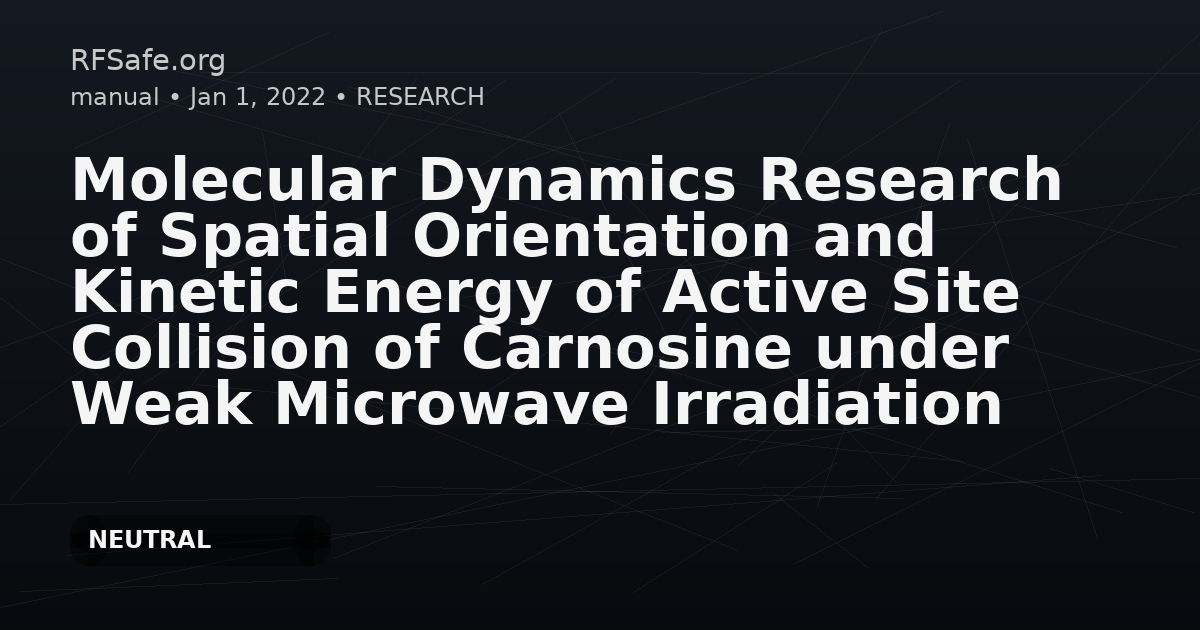 "linkedin": "This molecular dynamics simulation study examines carnosine under weak microwave irradiation and reports changes in collision orientation and kinetic energy that depend on temperature, intensity, frequency, and polarization (linear stronger than circular). The authors propose a “microwave postpolarization effect” (MWPPE) as a potential nonthermal mechanism hypothesis."