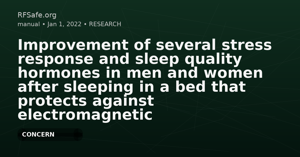 "linkedin": "In a 2022 Environmental Health study, volunteers who slept for 2 months in a bed described as isolating/draining EMFs (HOGO system) reportedly showed changes in multiple plasma hormones related to stress response and sleep quality and reduced biological age compared with placebo groups. Interpretation is limited by small samples and lack of exposure characterization in the abstract."