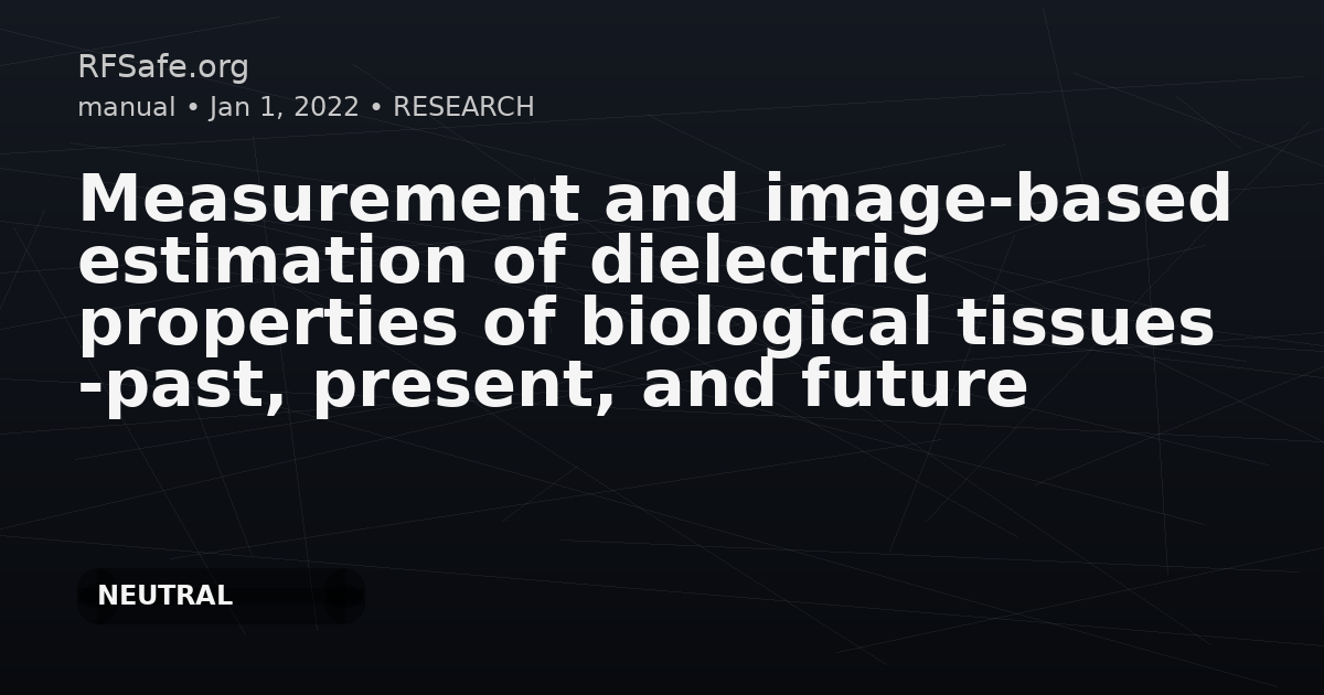 Measurement and image-based estimation of dielectric properties of biological tissues -past, present, and future Sasaki K, Porter E, Rashed EA, Farrugia L, Schmid G. Measurement and image-based estimation of dielectric properties of biological tissues -past, present, and future. Phys Med Biol. 2022;67(14):10.1088/1361- 6560/ac7b64. Published 2022 Jul 8. doi:10.1088/1361-6560/ac7b64. Abstract The dielectric properties of biological tissues are fundamental pararmeters that are essential for electromagnetic modeling of the human body. The primary database of dielectric properties compiled in 1996 on the basis of dielectric measurements at frequencies from 10 Hz to 20 GHz has attracted considerable attention in the research field of human protection from non-ionizing radiation. This review summarizes findings on the dielectric properties of biological tissues at frequencies up to 1 THz since the database was developed. Although the 1996 database covered general (normal) tissues, this review also covers malignant tissues that are of interest in the research field of medical applications. An intercomparison of dielectric properties based on reported data is presented for several tissue types. Dielectric properties derived from image-based estimation techniques developed as a result of recent advances in dielectric measurement are also included. Finally, research essential for future advances in human body modeling is discussed. Open access paper: iopscience.iop.org