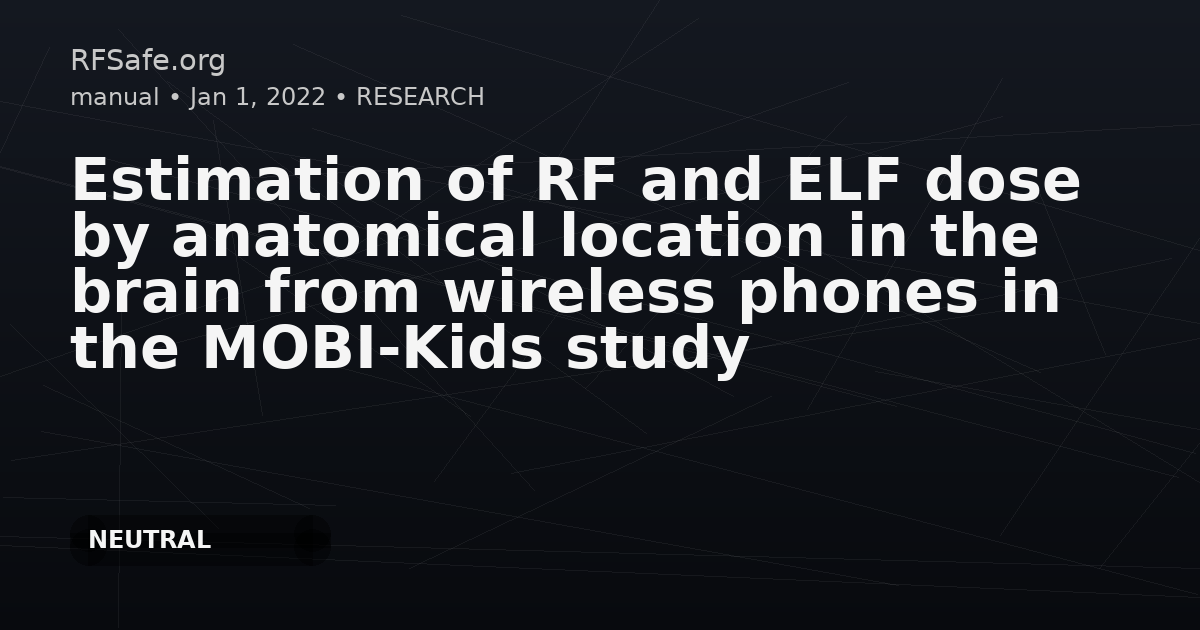 Estimation of RF and ELF dose by anatomical location in the brain from wireless phones in the MOBI-Kids study Carolina Calderón, Gemma Castaño-Vinyals, Myron Maslanyj, Joe Wiart, Ae-Kyoung Lee, Masao Taki, Kanako Wake, Alex Abert, Francesc Badia, Abdelhamid Hadjem, Hans Kromhout, Patricia de Llobet, Nadège Varsier, Emmanuelle Conil, Hyung-Do Choi, Malcolm R. Sim, Elisabeth Cardis. Estimation of RF and ELF dose by anatomical location in the brain from wireless phones in the MOBI-Kids study. Environment International. 163. 2022. 107189. doi:10.1016/j.envint.2022.107189. Highlights • Epidemiological studies on mobile phone radiation typically rely on phone use history. • MOBI-Kids is the first study to estimate RF and ELF dose from wireless phones. • RF and ELF doses vary by age, phone model, communication system and amount of use. • Communication system and location in the brain are key determinants of dose. • Duration and number of calls are likely to be crude proxies of dose. Abstract Wireless phones (both mobile and cordless) emit not only radiofrequency (RF) electromagnetic fields (EMF) but also extremely low frequency (ELF) magnetic fields, both of which should be considered in epidemiological studies of the possible adverse health effects of use of such devices. This paper describes a unique algorithm, developed for the multinational case-control MOBI-Kids study, that estimates the cumulative specific energy (CSE) and the cumulative induced current density (CICD) in the brain from RF and ELF fields, respectively, for each subject in the study (aged 10–24 years old). Factors such as age, tumour location, self-reported phone models and usage patterns (laterality, call frequency/duration and hands-free use) were considered, as was the prevalence of different communication systems over time. Median CSE and CICD were substantially higher in GSM than 3G systems and varied considerably with location in the brain. Agreement between RF CSE and mobile phone use variables was moderate to null, depending on the communication system. Agreement between mobile phone use variables and ELF CICD was higher overall but also strongly dependent on communication system. Despite ELF dose distribution across the brain being more diffuse than that of RF, high correlation was observed between RF and ELF dose. The algorithm was used to systematically estimate the localised RF and ELF doses in the brain from wireless phones, which were found to be strongly dependent on location and communication system. Analysis of cartographies showed high correlation across phone models and across ages, however diagonal agreement between these cartographies suggest these factors do affect dose distribution to some level. Overall, duration and number of calls may not be adequate proxies of dose, particularly as communication systems available for voice calls tend to become more complex with time. Conclusion This paper describes the algorithm constructed to assess the localised RF and ELF dose arising from the use of mobile (cellular) and DECT (cordless) phones in the MOBI-Kids study. The algorithm was based on information on phone use provided by study subjects, on information from operators on prevalence of communication systems as a function of time, on RF and ELF modelling performed as part of the exposure assessment work package (which considered morphological changes due to age), and on validation studies performed within the overall study. ELF and RF dose diminished rapidly with increasing depth, demonstrating location in the brain is an important variable in dose estimation. The agreement between CSE and phone use variables varied by communication system; it was highest for GSM and close to 0 for UMTS and CDMA. Higher agreement was observed between CICD and phone use variables, but agreement was still close to 0 for 3G systems. Analysis of cartographies showed high correlation across phone models and across ages, however diagonal agreement between these cartographies suggest these factors do affect dose distribution to some level and should thus be ideally considered. Overall, the results highlight the importance of considering the effect of communication system and anatomical location in estimating dose and suggests phone use is becoming a poorer exposure proxy as communication systems available for voice calls tend to become more complex with time sciencedirect.com