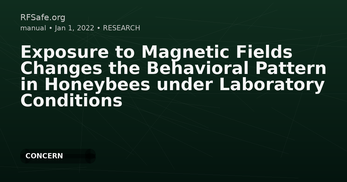 Exposure to Magnetic Fields Changes the Behavioral Pattern in Honeybees under Laboratory Conditions Paweł Migdał, Ewelina Berbeć, Paweł Bieńkowski, Mateusz Plotnik, Agnieszka Murawska, Krzysztof Latarowski. Exposure to Magnetic Fields Changes the Behavioral Pattern in Honeybees (Apis mellifera L.) under Laboratory Conditions. Animals (Basel). 2022 Mar 29;12(7):855. doi: 10.3390/ani12070855. Abstract Earth's magnetic field (MF) plays an important role for many species, including the honeybee, in navigation. Nowadays, much larger alternating fields are emitted by miscellaneous electric infrastructure components, such as transformers and power lines, and the environment is therefore polluted by an anthropogenic electromagnetic field, though little is known regarding its impact on living organisms. The behavior of animals is the first and easiest way to establish the impact of stress. It shows if the animal can detect the exposure and react to it. To investigate this, one-day-old bees were exposed to a 50 Hz magnetic field of induction at 1 mT and 1.7 mT for 10 min, 1 h, and 3 h under laboratory conditions. All groups exposed to the magnetic field showed differences in behavioral patterns. What is more, they presented a behavior absent in the control: loss of balance. There were differences, both in the ratio of behaviors and in the number of bouts-exposed bees more often changed behavior. Occurrence of differences is an indication of the reaction of the honeybee organism to the magnetic field. Loss of balance is a disturbing symptom, and behavior changes indicate a disturbance of the honeybee by the electromagnetic field. Open access paper: ncbi.nlm.nih.gov