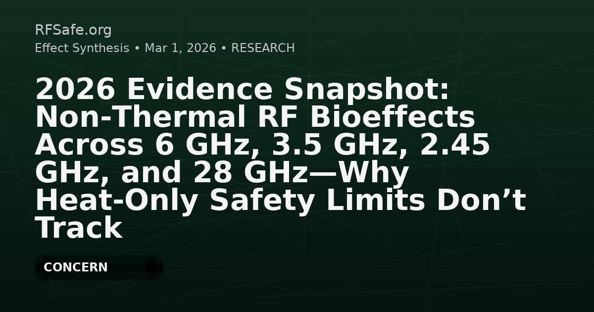 2026 Evidence Snapshot: Non‑Thermal RF Bioeffects Across 6 GHz, 3.5 GHz, 2.45 GHz, and 28 GHz—Why Heat‑Only Safety Limits Don’t Track Biology