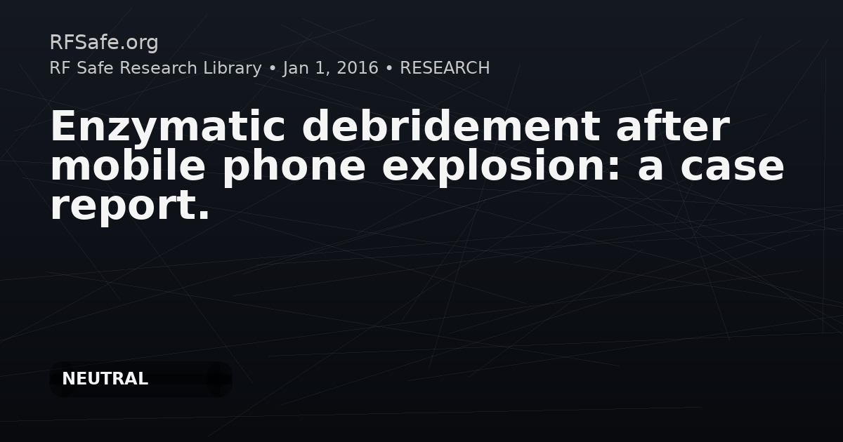 This case report describes a paediatric burn injury resulting from a mobile phone lithium-ion battery explosion. The patient was treated with selective enzymatic debridement, which the authors note is simple, minimally invasive, and safe. The report concerns an acute thermal injury mechanism rather than EMF exposure.