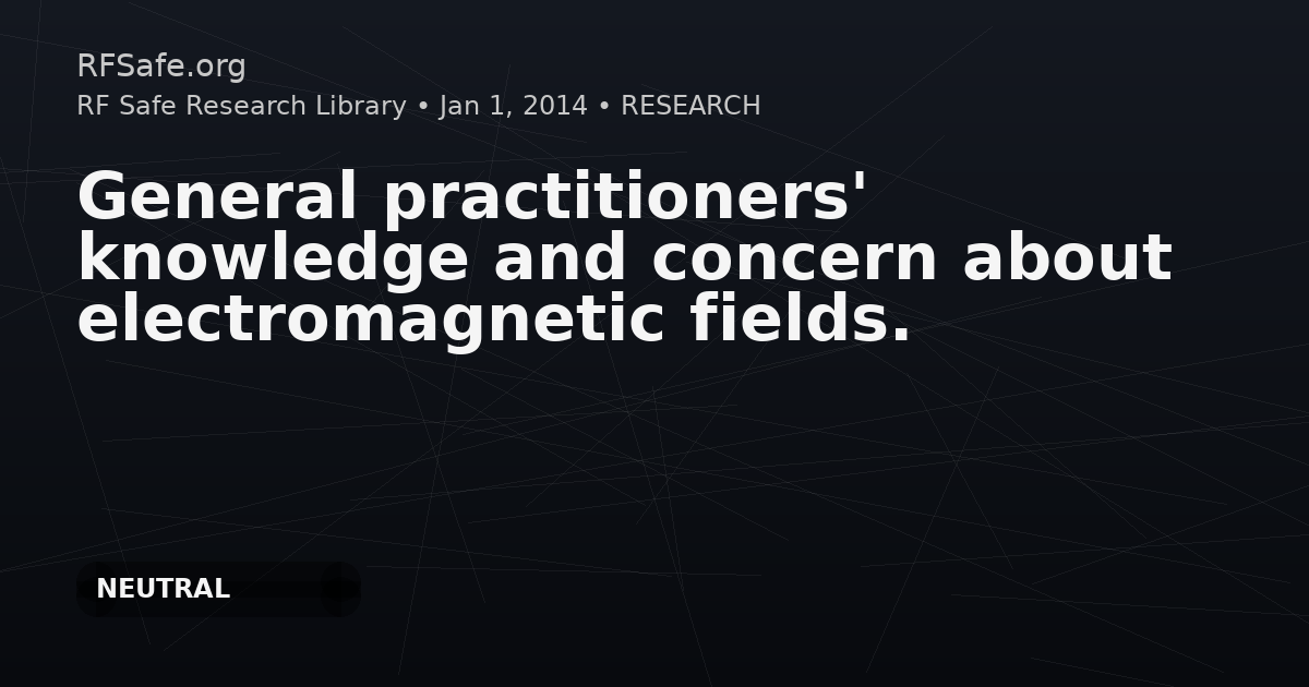 This cross-sectional survey sampled general practitioners in Germany to assess EMF knowledge and its relationship to concern about EMF health risks. Four latent knowledge groups were identified, with 43.1% giving mainly correct answers and 14.0% answering mostly "don't know". Concern was not related to knowledge class or number of correct answers, but was associated with the number of incorrect answers, suggesting misconceptions may contribute to higher concern.