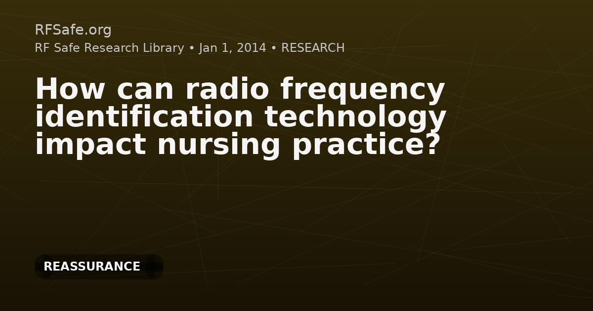 This article discusses how radio frequency identification (RFID) technology may impact nursing practice. The abstract reports potential operational and care benefits, including time savings, improved quality of care, enhanced patient and staff safety, and reduced costs. It also suggests that lack of understanding of RFID systems may hinder adoption by nurses.