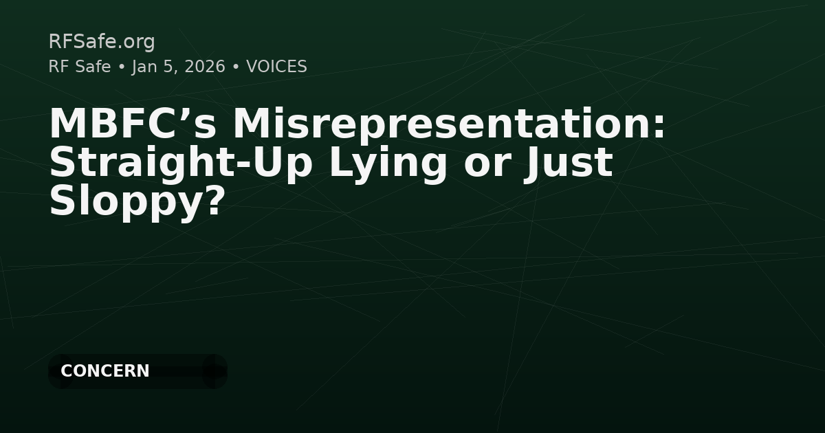 RF Safe criticizes Media Bias Fact Check (MBFC) for labeling RF Safe as “pseudoscience” with “mixed factual reporting” and “low credibility,” arguing MBFC’s entry contains factual errors and misrepresentations. The post says RF Safe does not claim RF radiation definitively causes human disease, but instead presents precautionary interpretations of peer-reviewed studies and proposed non-thermal mechanisms. It also alleges MBFC made specific, checkable mistakes about study-linking practices and site ownership/funding, and failed to correct them after rebuttals.