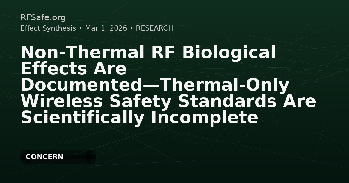 Non‑Thermal RF Biological Effects Are Documented—Thermal‑Only Wireless Safety Standards Are Scientifically Incomplete