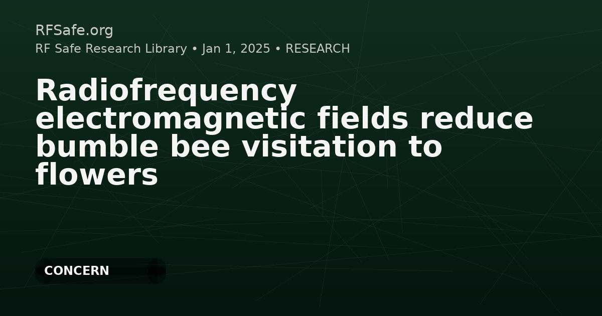 This blinded, two-year study examined whether RF-EMF exposure at 2.4 and 5.8 GHz affects pollinator visitation to Salvia and Lavandula. The authors report no significant effect on honey bee visitation rates. They report a significant reduction in bumble bee visits per observation period under RF-EMF exposure, which they frame as a potential risk warranting further long-term research.