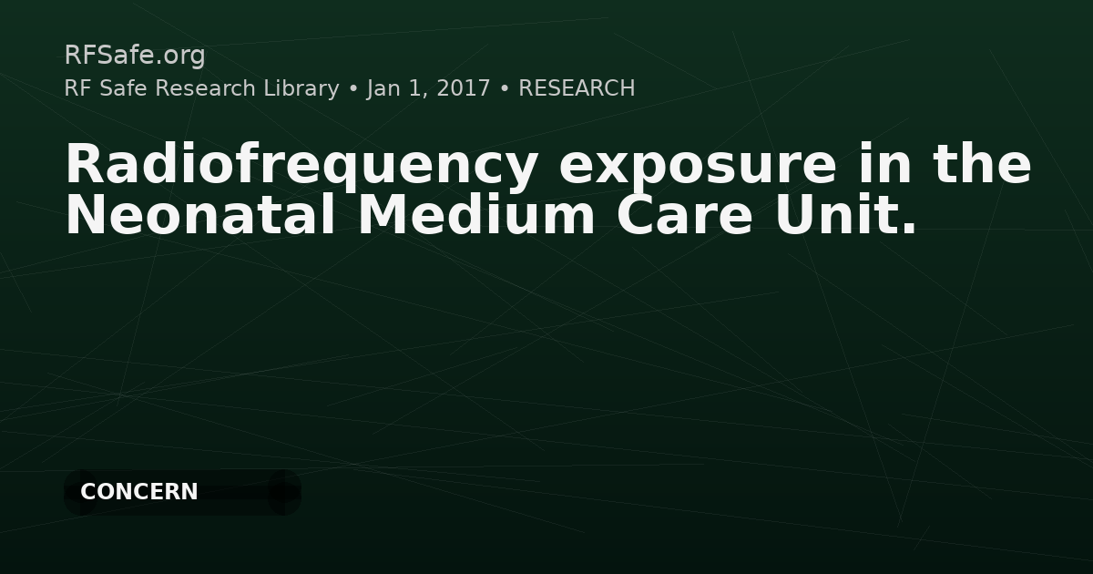 This exposure assessment characterized RF-EMF levels in a Neonatal Medium Care Unit and inside incubators using spot and long-term dosimeter measurements. Reported levels varied by location (higher near a window and near the evaluated incubator) and by time (higher at night than during the day). The authors emphasize uncertainty about impacts on premature infants and suggest a prudent avoidance approach.