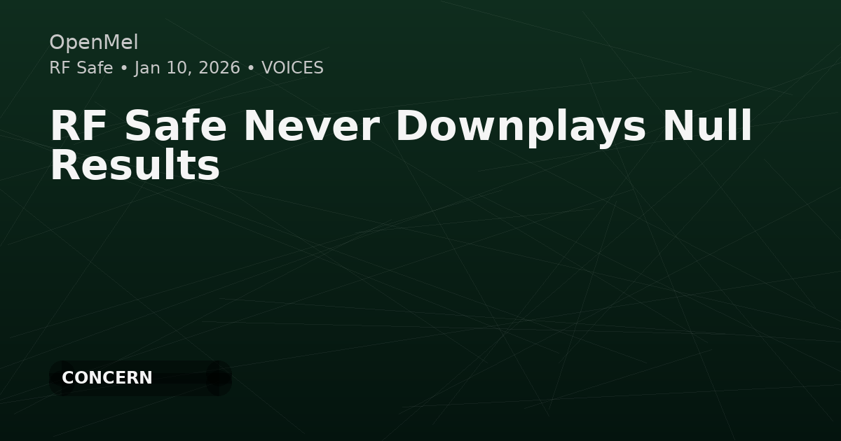 RF Safe argues that “no effect” (null) findings in RF research should be treated as informative constraints rather than dismissed, within its S4–Mito–Spin mechanistic framework. The post claims biological and exposure heterogeneity can produce nonlinear, tissue- and signal-dependent outcomes, making null results an expected pattern under many study conditions. It references a WHO-commissioned systematic review on RF-EMF and oxidative stress biomarkers as concluding the evidence is of “very low certainty,” citing bias, heterogeneity, and exposure/measurement limitations.